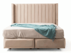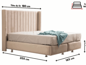Son sommier se compose de plaques en bois avec renforts en métal pour un maintien optimal.